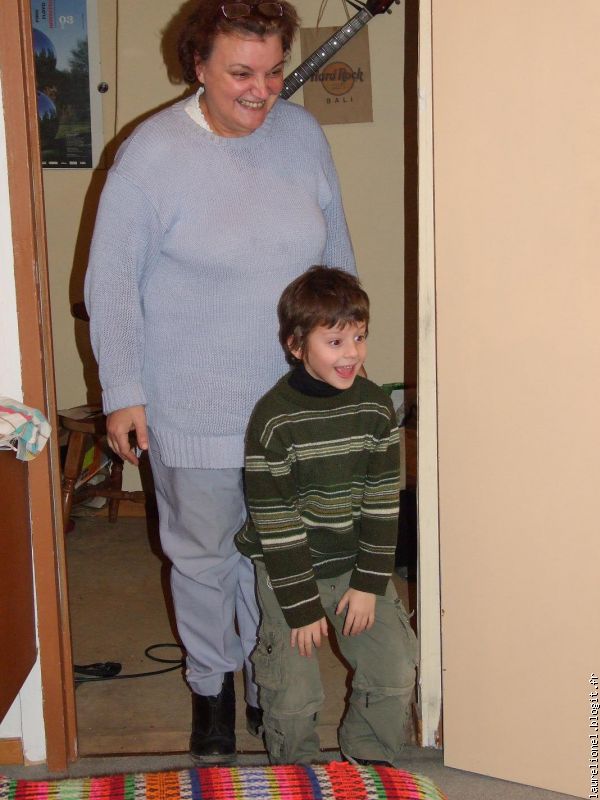 Après une interlude où Lionel s'est éclipsé pour aller faire le père noël chez les parents d'Aldrick, il est revenu faire le père noël pour sa nièce. Voilà une chose intéressante, la puce a réalisé 12 heures après que le bonhomme tout rouge à la longue barbe blanche portait les même chaussures que son tonton !!!